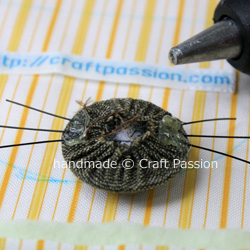 Position the bristles by inserting them between the gathers of the nose. Apply hot glue to hold them in place.