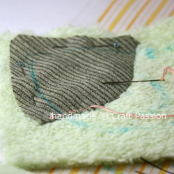 Position the ears to the polar fleece and tack a few stitches to secure them in place.