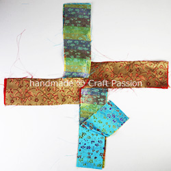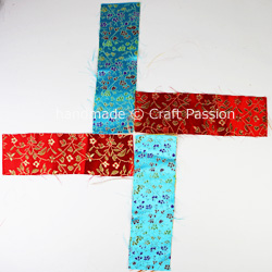 Turn the “cross” inside out and sew the opening with the whip stitches. Iron the “cross”