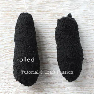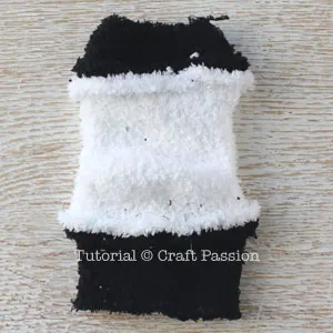 So, to begin, make sure you have 2 pairs of chenille socks – 1 black pair and 1 white/cream pair.