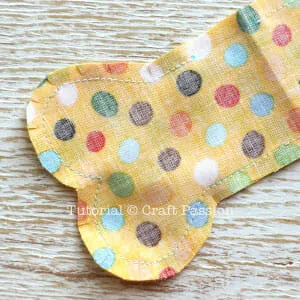 Cut out the sock pieces with approx. 1/8″ – 1/4″ seam allowance. Felt pieces (except ears) do not need any seam allowance, just cut them out following the traced lines.