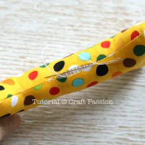 Turn the dog bone right side out from the opening. Smooth out the curve and the seam.