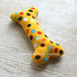 - DOG BONE: Fold fabric with right side facing together. Trace the Dog Bone template on the wrong side of the fabric, sew around, and leave a 1" opening. Cut with 1/4" seam allowance, Turn. Stuff. Sew to close the opening.