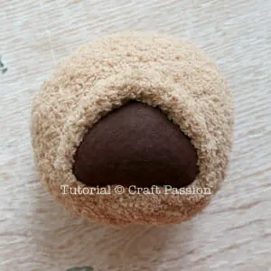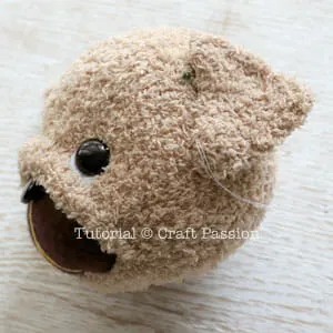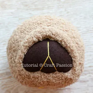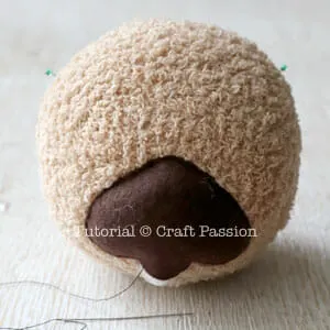 Starting from the bottom, sew around the muzzle, leaving about 1/2″ opening. After that, stuff the muzzle with stuffing material densely through the opening until the muzzle is raised.