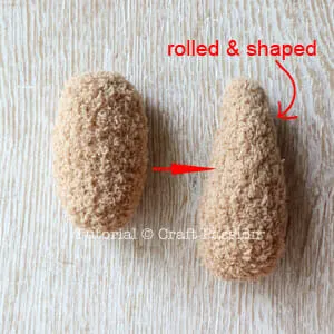 Tip: always massage the stuffing to loosen out lumps. Long tubular parts should be rolled with both hands so any lumps will be smooth, and help to make the parts longer and firmer.
