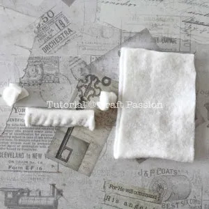 Fold the roll the cotton batting tightly to about 2 1/2″ long and 1/2″ in diameter as shown in the picture.