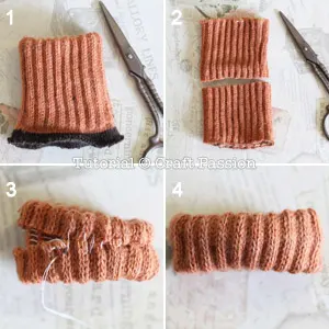 1 & 2. Cut the ribbing of the sock to about 2″ long.