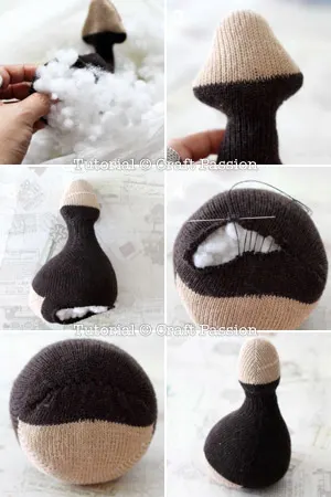 1. Stuff the sock turkey body with Poly-fill stuffing material.