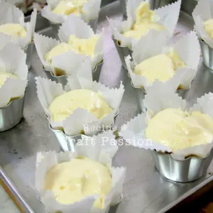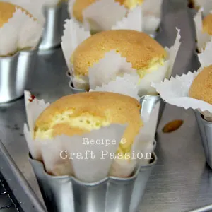 Alternative pan: If you do not have the baking cup molds like the one we used, please use muffin pans. Using muffin pans may yield more cakes as the height of the cake are shorter. Baking time may slightly shorter. Please keep in mind that all ovens temperature and baking time varies.