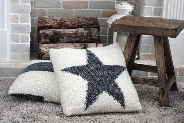Get the full article at https://www.craftpassion.com/star-pillow-knitting-pattern/