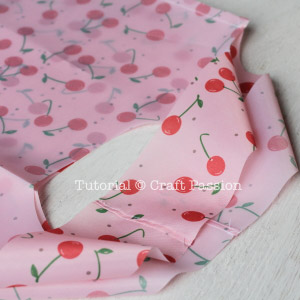 Fold the grocery bag with right facing each other, align the side seam and bottom seams. Make sure the strawberry pieces align perfectly. Pin or clip. Sew side and bottom seam with 3/8″ seam allowance.