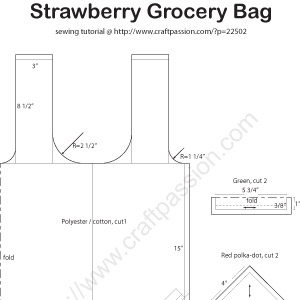 - The material I used is thin, if you would to sew it with heavier fabric, old T-shirt for example, please increase the size of the strawberry pattern otherwise the grocery bag cannot fit into it.