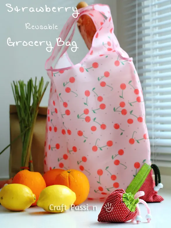 Get the full article at https://www.craftpassion.com/strawberry-reusable-grocery-bag/
