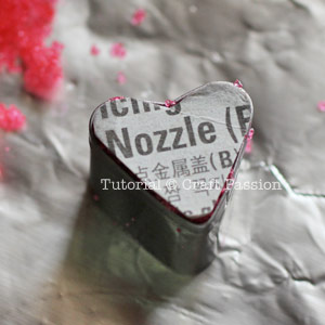 Place the heart-shaped cardboard on the top of the cutter. Press the sugar until it is firm and level especially if it is not filled to full height.
