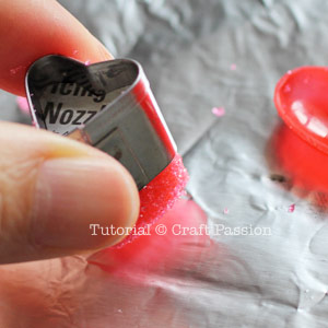Cut the heart shape out from cardboard. Cut it a little smaller so that it can go through the cookie cutter.
