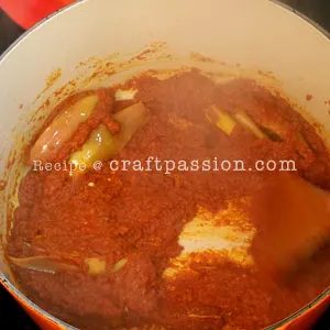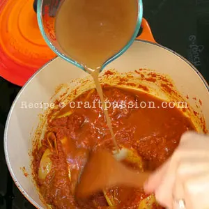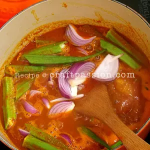 - Pour in tamarind juice [C Pic] and add Lady's Fingers and Onions [D Pic]. Bring to boil.