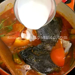 - Add the fish head, tomatoes, and Vietnamese coriander [E Pic].