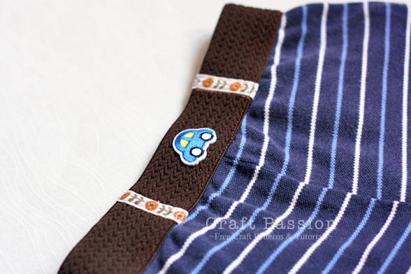 If your polo shirt has stripes like mine, aligned the stripes when pinning and cutting so that it looks neat and matched after sewn.