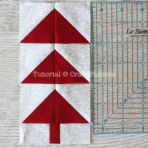 Final tree quilt block measurement: 3″ W x 3 1/2″ H (exclude seam allowance).