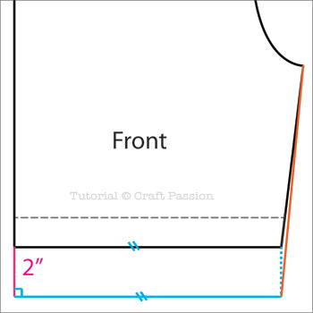 Depends how much you want to lengthen, let say 2″ for example. On the front pattern,