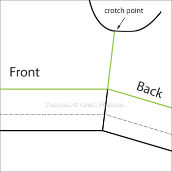 Fold the paper to get the front and back pattern closer, check both inseam’s length and the curvature of the center seam of the crotch curve.