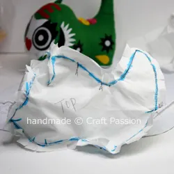 Turn the fabric inside out and stuff it with poly-fill. Sew the opening with the whip stitch.