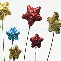 Pull out the working floral wire from the DIY Glitter Star, apply glue at the hole and insert the Christmas Tree’s floral wire into the star.