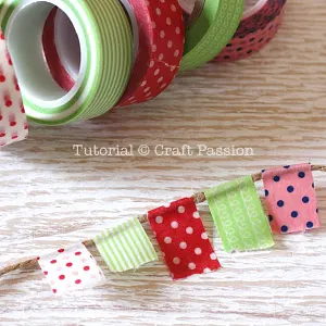 Trim the torn edges of the washi tape to about 1/2″ length. If you want a longer flag garland, you can trim lesser.