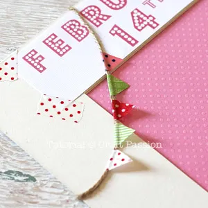 Hang the love tag on the flag garland to complete the Valentine Scrapbooking display.