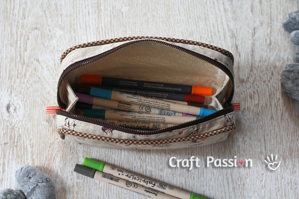 Get the full article at https://www.craftpassion.com/zipper-pencil-case/