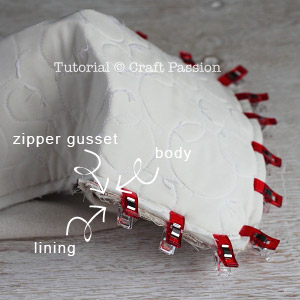 Bring the lining over to the other side and sandwich the zipper gusset in between.