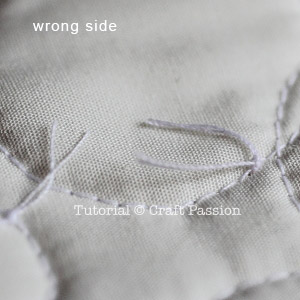 Pull the front thread to the back, tie a knot and trim the ends. This will prevent the thread from exposing to the front.